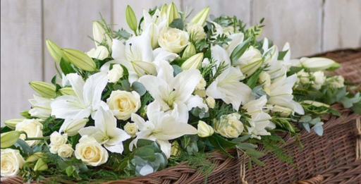 Our curated collection includes traditional funeral wreaths, casket sprays, and funeral sheaves, as well as elegant posies, crosses, roses and bouquets. Popular choices feature serene white lilies, soft pink roses, and seasonal flowers in calming whites, creams, and greens — each arrangement carefully designed to reflect peace and remembrance.